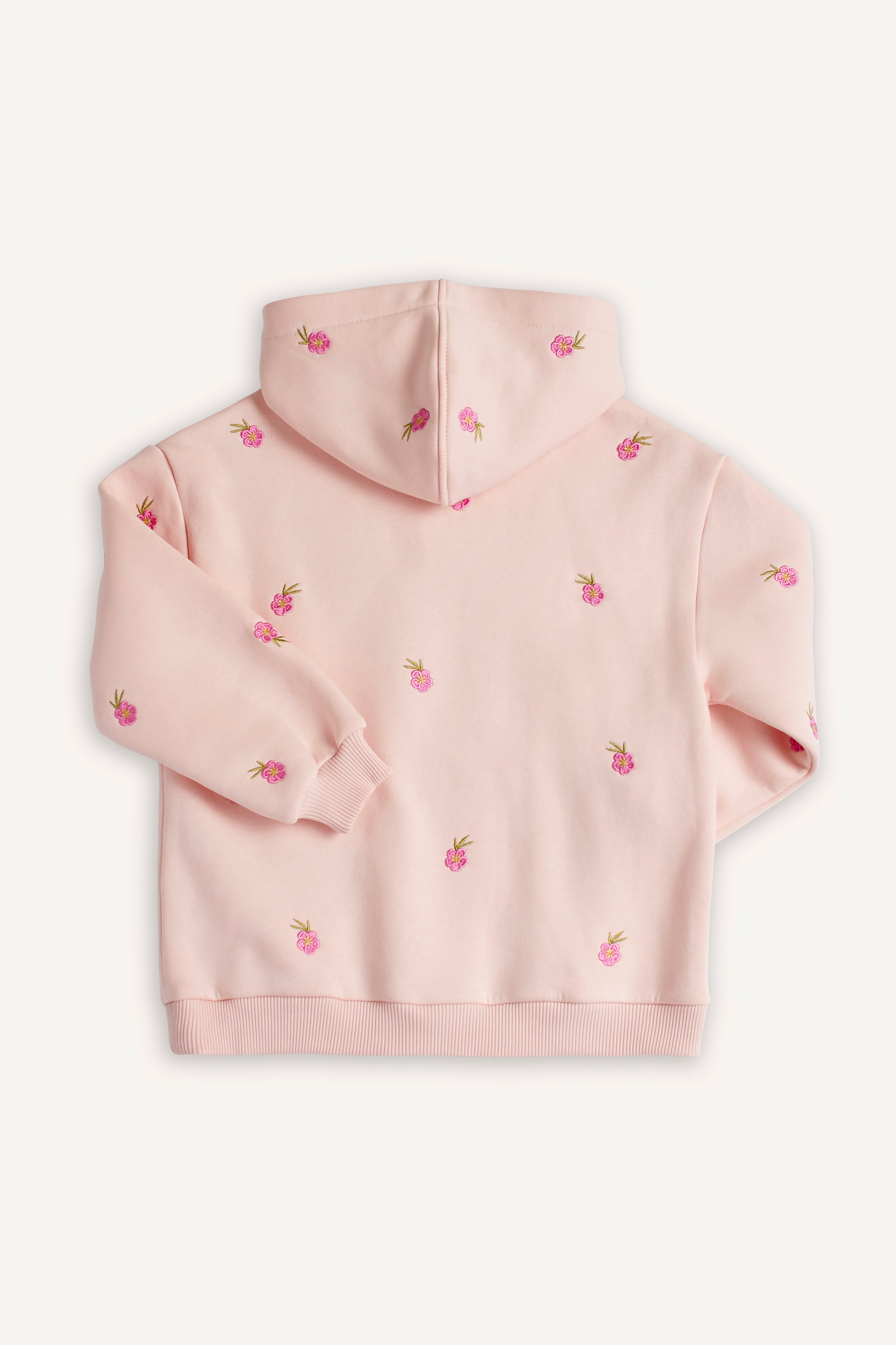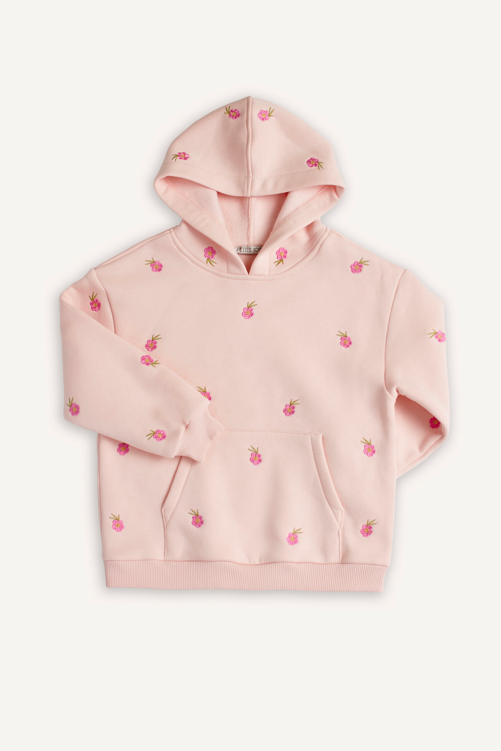 ÇİÇEK NAKIŞLI KAPÜŞONLU EŞOFMAN ÜSTÜ