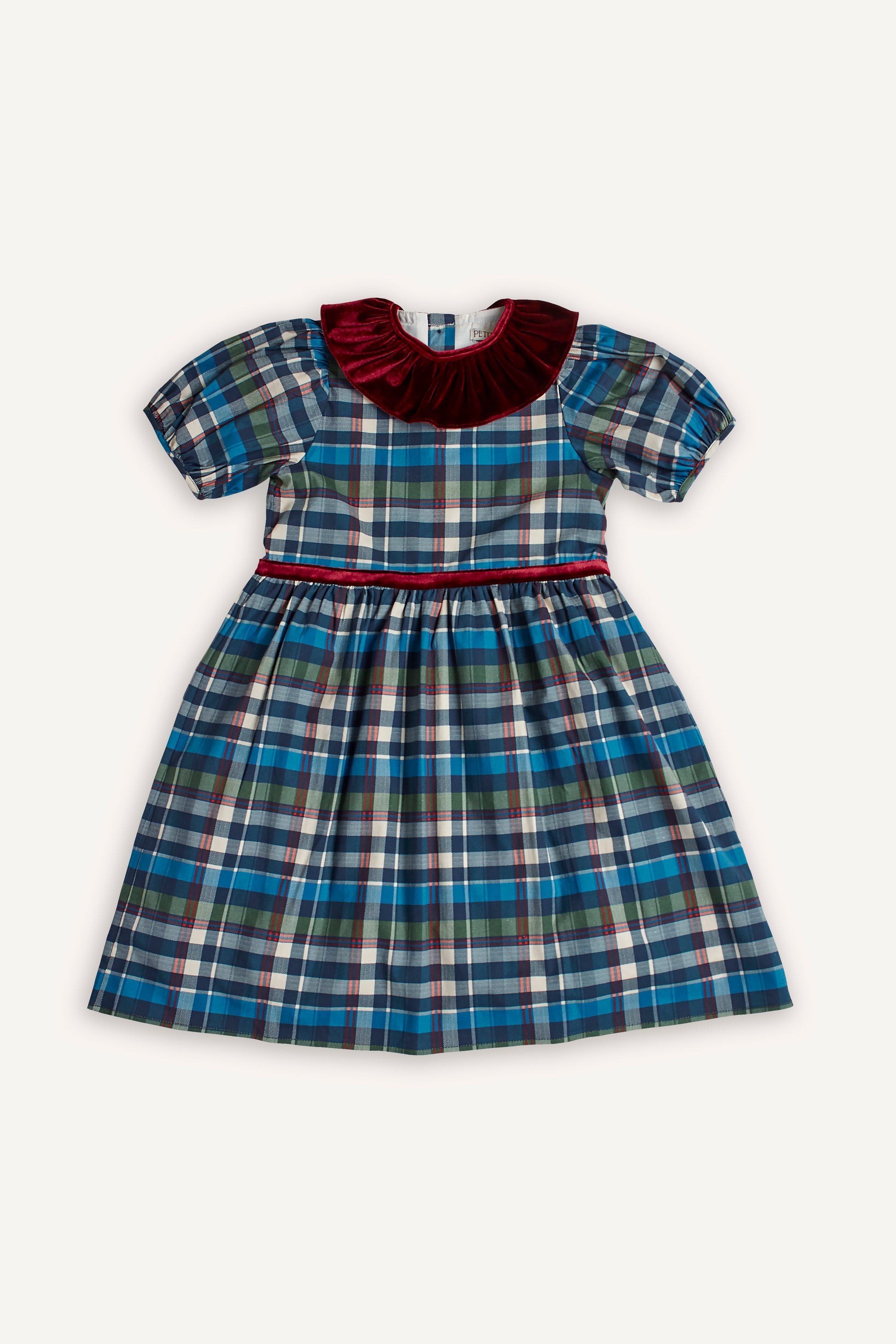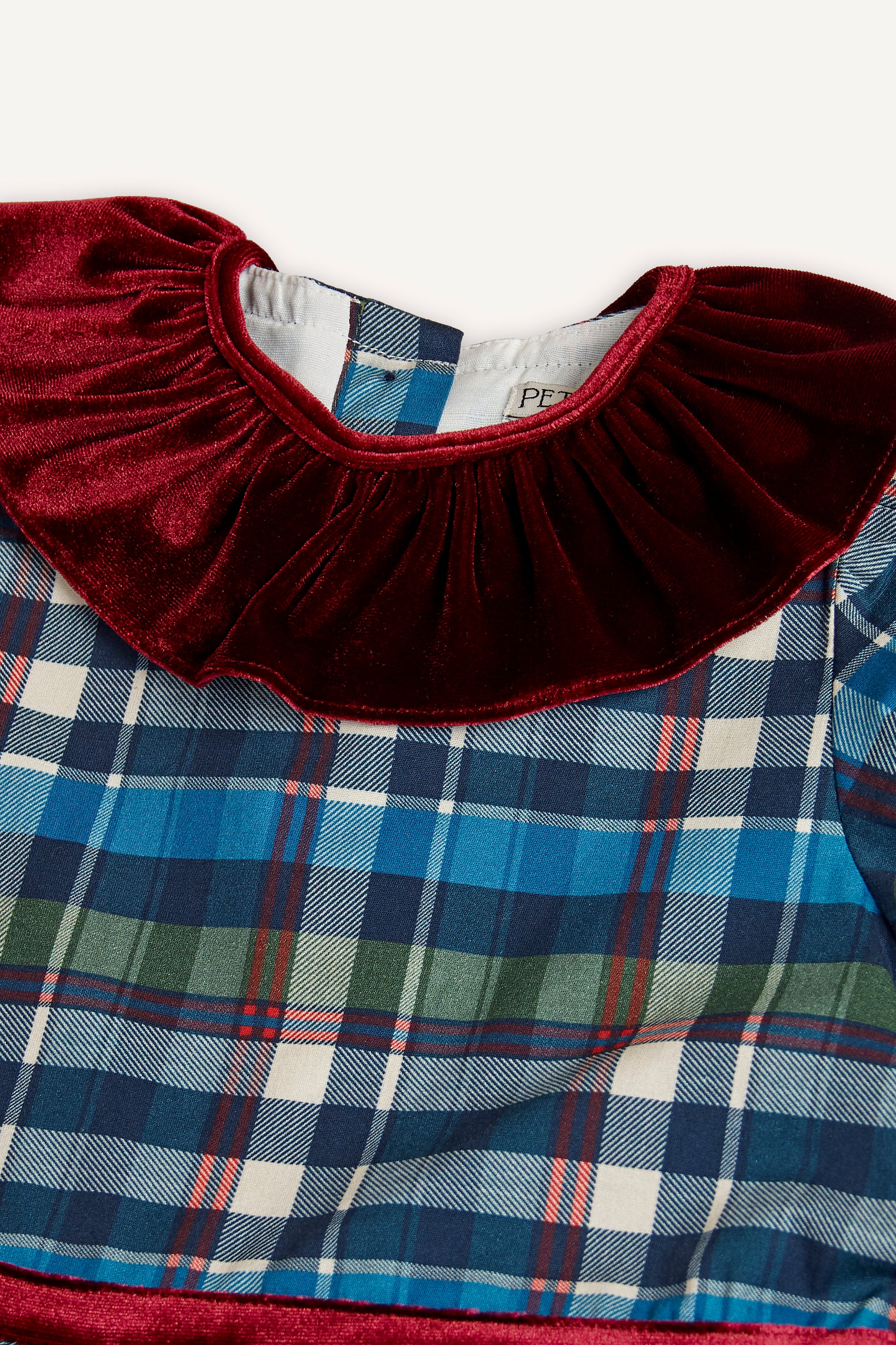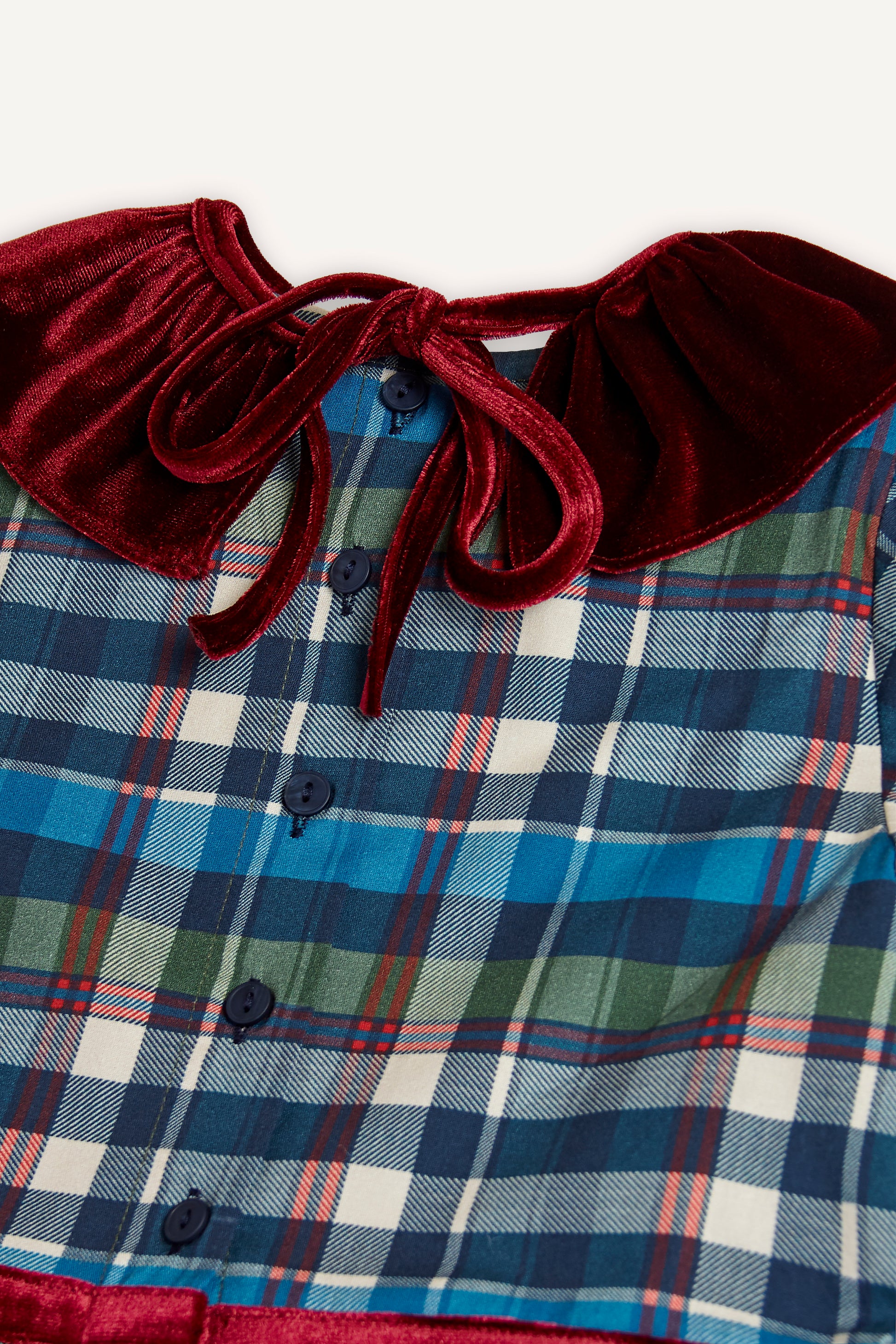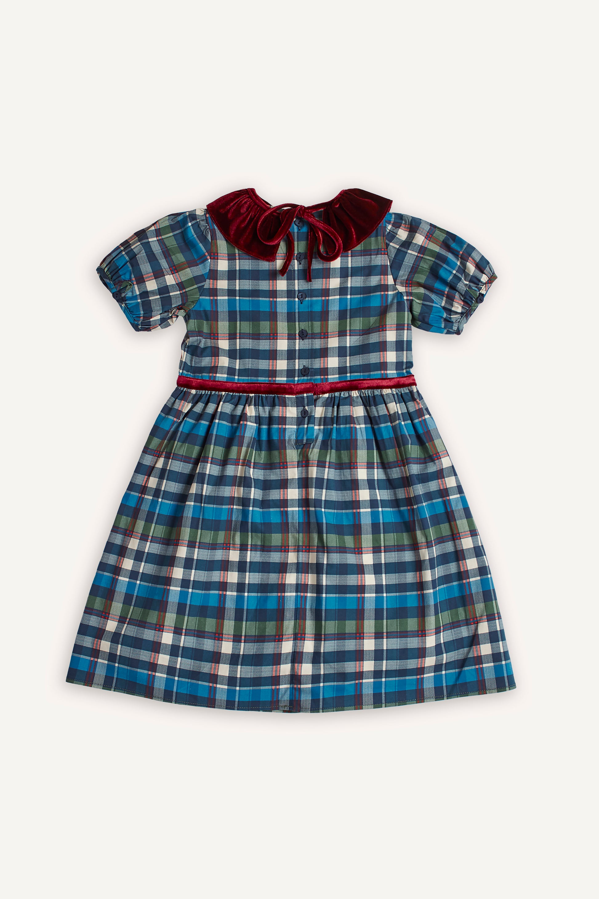 KIRMIZI KADİFE YAKALI EKOSE ELBİSE